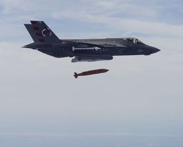 | Keywords: f-35 f35 f-35c f35c navy pax river itf paxriveritf nas patuxent river naspatuxentriver joint strike fighter jointstrikefighter jsf navair atlantic test ranges atlantictestranges vx-23 vx23 pax river paxriver itf cf-05 cf05 an agm-154 joint standoff weapon anagm154jointstandoffweapon jsow patuxent river patuxentriver maryland united states unitedstates us outdoor airplane aircraft vehicle The F-35 Lightning II Pax River Integrated Test Force from Air Test and Evaluation Squadron (VX) 23 conducted the first weapons separation test of an AGM-154 Joint Standoff Weapon (JSOW) from an F-35C Lightning II carrier variant March 23. During flight 180 over the NAVAIR Atlantic Test Ranges, Cmdr. Ted Dyckman, a U.S. Navy F-35 test pilot, dropped an inert JSOW from aircraft CF-05. This test is the first of a series of JSOW separation events scheduled for 2016. U.S. Navy courtesy photo by Dane Wiedmann. The F-35 Lightning II Pax River Integrated Test Force from Air Test and Evaluation Squadron (VX) 23 conducted the first weapons separation test of an AGM-154 Joint Standoff Weapon (JSOW) from an F-35C Lightning II carrier variant March 23. During flight 180 over the NAVAIR Atlantic Test Ranges, Cmdr. Ted Dyckman, a U.S. Navy F-35 test pilot, dropped an inert JSOW from aircraft CF-05. This test is the first of a series of JSOW separation events scheduled for 2016. U.S. Navy courtesy photo by Dane Wiedmann. |