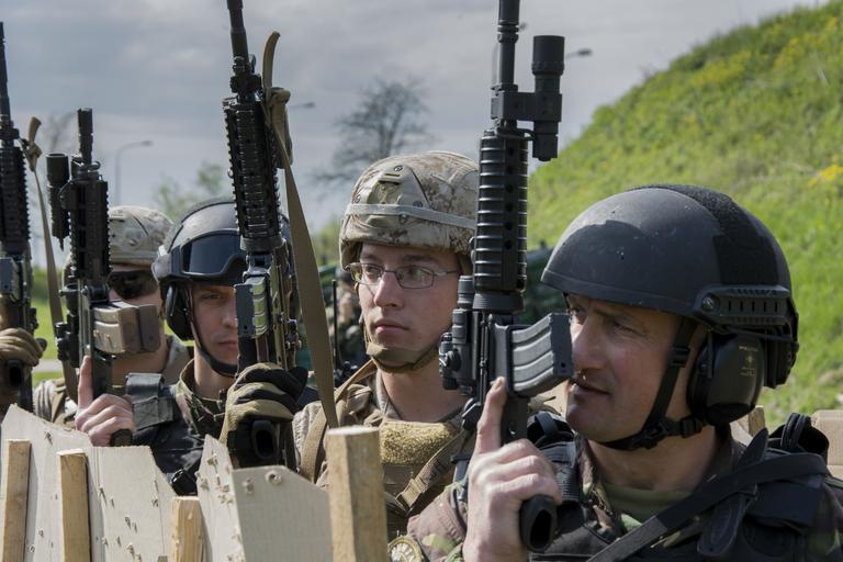 | Keywords: u.s. navy usnavy u.s. marines usmarines military serbia united states unitedstates navy marines sailor marine corpseman staff sergeant staffsergeant captain sergeant lance corproal lancecorproal corporal private anti-terrorism force antiterrorismforce fast team fastteam fasteur europe guns close quarter combat closequartercombat cqb designated marksman designatedmarksman riot team riotteam gdm caj sniper petty officer pettyofficer outdoor 160329-N-UJ417-293 Belgrade, Serbia (March 29, 2016) Marines from 5th Platoon of the Fleet Anti-terrorism Security Team Company, Europe (FASTEUR) and members of Serbia's Special Anti-Terrorism Unit form up for a close quarters combat drill in Belgrade, Serbia. FASTEUR’s mission is to conduct rapid response expeditionary anti-terrorism and security operations in order to protect vital national and naval assets. (U.S. Navy photo by Mass Communication Specialist 3rd Class Russell R. Rhodes Jr./Released) 160329-N-UJ417-293 Belgrade, Serbia (March 29, 2016) Marines from 5th Platoon of the Fleet Anti-terrorism Security Team Company, Europe (FASTEUR) and members of Serbia's Special Anti-Terrorism Unit form up for a close quarters combat drill in Belgrade, Serbia. FASTEUR’s mission is to conduct rapid response expeditionary anti-terrorism and security operations in order to protect vital national and naval assets. (U.S. Navy photo by Mass Communication Specialist 3rd Class Russell R. Rhodes Jr./Released) |