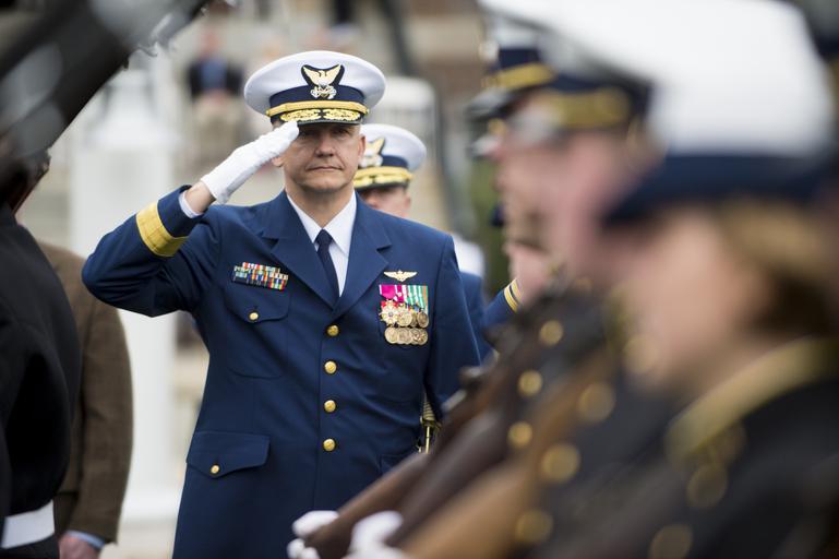 | Keywords: select outdoor NEW LONDON, Conn. -- The U.S. Coast Guard Academy Corps of Cadets conducts a regimental review April 1, 2016. Capt. Vincent Wilczynski (U.S. Coast Guard Ret.), recently named Professor Emeritus, acted as the event's reviewing official. U.S. Coast Guard photo by Petty Officer 2nd Class Cory J. Mendenhall. NEW LONDON, Conn. -- The U.S. Coast Guard Academy Corps of Cadets conducts a regimental review April 1, 2016. Capt. Vincent Wilczynski (U.S. Coast Guard Ret.), recently named Professor Emeritus, acted as the event's reviewing official. U.S. Coast Guard photo by Petty Officer 2nd Class Cory J. Mendenhall. |