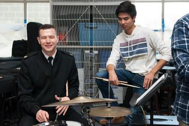 | Keywords: clinic colonial forge high school colonialforgehighschool commodores navy navy band navyband big band bigband education jazz music outreach 160412-N-DD694-001 STAFFORD, Va. (April 12, 2016) Musician 1st Class Kevin McDonald, of Greensboro, N.C., demonstrates big band drumming to a student at Colonial Forge High School. MU1 McDonald is a member of the U.S. Navy Band Commodores jazz ensemble, which provides educational outreach to young musicians throughout the year. (U.S. Navy photo by Musician 1st Class Jonathan Barnes/Released) 160412-N-DD694-001 STAFFORD, Va. (April 12, 2016) Musician 1st Class Kevin McDonald, of Greensboro, N.C., demonstrates big band drumming to a student at Colonial Forge High School. MU1 McDonald is a member of the U.S. Navy Band Commodores jazz ensemble, which provides educational outreach to young musicians throughout the year. (U.S. Navy photo by Musician 1st Class Jonathan Barnes/Released) |