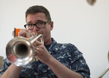 | Keywords: africa partnership station 2016; aps16; aps; c6f; usns; spearhea africapartnershipstation2016aps16apsc6fusnsspearhea libreville, gabon librevillegabon africa partnership station 2016; aps16; aps; c6f; usns; spearhead; navy; partnership; military sealift command; u.s. navy; navy; africapartnershipstation2016aps16apsc6fusnsspearheadnavypartnershipmilitarysealiftcommandusnavynavy 160413-N-QF605-243 LIBREVILLE, Gabon (April 13, 2016) - Musician 3rd Class Benjamin Strickland, a U.S. Naval Forces Europe Band “Topside” trumpet player, performs during a band engagement at American Corner in Libreville, Gabon, April 13, 2016. American Corner is an American cultural center that aims to promote U.S. culture in Gabon. (U.S. Navy photo by Mass Communication Specialist 1st Class Amanda Dunford/Released) 160413-N-QF605-243 LIBREVILLE, Gabon (April 13, 2016) - Musician 3rd Class Benjamin Strickland, a U.S. Naval Forces Europe Band “Topside” trumpet player, performs during a band engagement at American Corner in Libreville, Gabon, April 13, 2016. American Corner is an American cultural center that aims to promote U.S. culture in Gabon. (U.S. Navy photo by Mass Communication Specialist 1st Class Amanda Dunford/Released) |