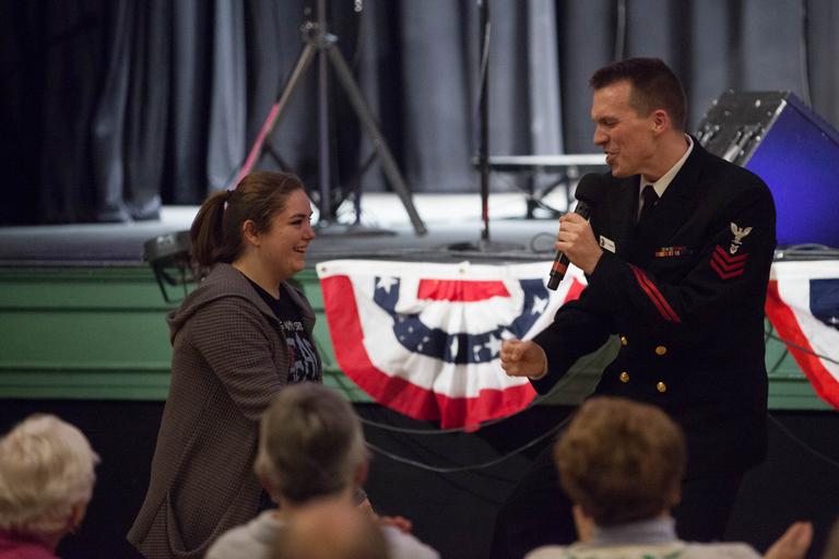 Keywords: bill edwards billedwards manchester motown music navy navy band navyband new hampshire newhampshire sea chanters seachanters navybandtour MANCHESTER, N.H. (April 15, 2016) Musician 1st Class Bill Edwards dances with a member of the audience during a medley of Motown hits. The Sea Chanters are on a 22-day tour of the northeastern United States. (U.S. Navy photo by Musician 1st Class Sarah Blecker/Released) MANCHESTER, N.H. (April 15, 2016) Musician 1st Class Bill Edwards dances with a member of the audience during a medley of Motown hits. The Sea Chanters are on a 22-day tour of the northeastern United States. (U.S. Navy photo by Musician 1st Class Sarah Blecker/Released) |