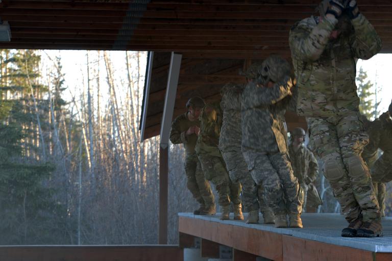 MAKE A MEME View Large Image Airmen and Soldiers perform static and free-fall parachute jumps out of UH-60 Black Hawk helicopters as part of Grizzly Breakup, a training exercise, at Malemute drop zone, Joint Base Elmendorf-Richardson, Alaska, April 18, 2016. Grizzly ...