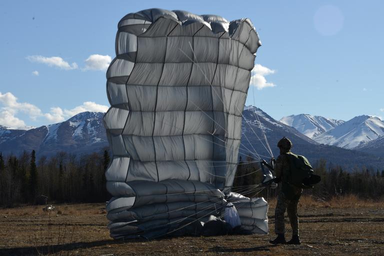 Keywords: joint base elmendorf-richardson jointbaseelmendorfrichardson alaska usa outdoor Airmen and Soldiers perform static and free-fall parachute jumps out of UH-60 Black Hawk helicopters as part of Grizzly Breakup, a training exercise, at Malemute drop zone, Joint Base Elmendorf-Richardson, Alaska, April 18, 2016. Grizzly Breakup is a week-long operation where service members from seven special operations units, spanning multiple installations, participate in parachute jumps out of Black Hawks and C-17 Globemaster IIIs. Airmen and Soldiers perform static and free-fall parachute jumps out of UH-60 Black Hawk helicopters as part of Grizzly Breakup, a training exercise, at Malemute drop zone, Joint Base Elmendorf-Richardson, Alaska, April 18, 2016. Grizzly Breakup is a week-long operation where service members from seven special operations units, spanning multiple installations, participate in parachute jumps out of Black Hawks and C-17 Globemaster IIIs.