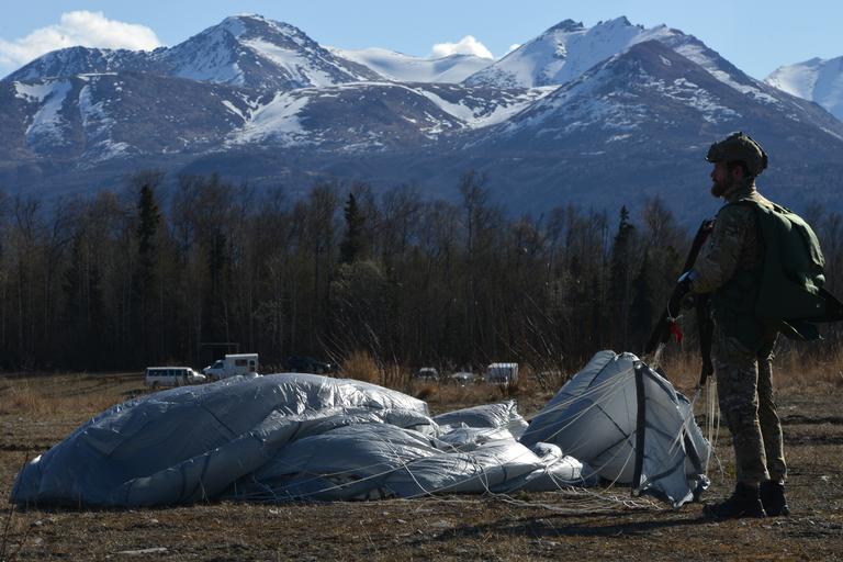 | Keywords: joint base elmendorf-richardson jointbaseelmendorfrichardson alaska usa outdoor mountain landscape ridge mountainside Airmen and Soldiers perform static and free-fall parachute jumps out of UH-60 Black Hawk helicopters as part of Grizzly Breakup, a training exercise, at Malemute drop zone, Joint Base Elmendorf-Richardson, Alaska, April 18, 2016. Grizzly Breakup is a week-long operation where service members from seven special operations units, spanning multiple installations, participate in parachute jumps out of Black Hawks and C-17 Globemaster IIIs. Airmen and Soldiers perform static and free-fall parachute jumps out of UH-60 Black Hawk helicopters as part of Grizzly Breakup, a training exercise, at Malemute drop zone, Joint Base Elmendorf-Richardson, Alaska, April 18, 2016. Grizzly Breakup is a week-long operation where service members from seven special operations units, spanning multiple installations, participate in parachute jumps out of Black Hawks and C-17 Globemaster IIIs. |