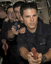 Keywords: uss porter (ddg 78) ussporterddg78 destroyer srf-b srfb security reation force basic securityreationforcebasic 9m groupshot people indoor 160504-N-FQ994-025 MEDITERRANEAN SEA (May 4, 2016) Gunner's Mate Seaman William Kelly, from Cincinnati, leads a team of Sailors aboard USS Porter (DDG 78) during security reaction force basic (SRF-B) training May 4, 2016. Porter, an Arleigh Burke-class guided-missile destroyer, forward-deployed to Rota, Spain, is conducting a routine patrol in the U.S. 6th Fleet area of operations in support of U.S. national security interests in Europe. (U.S. Navy Photo by Mass Communication Specialist 3rd Class Robert S. Price/Released) 160504-N-FQ994-025 MEDITERRANEAN SEA (May 4, 2016) Gunner's Mate Seaman William Kelly, from Cincinnati, leads a team of Sailors aboard USS Porter (DDG 78) during security reaction force basic (SRF-B) training May 4, 2016. Porter, an Arleigh Burke-class guided-missile destroyer, forward-deployed to Rota, Spain, is conducting a routine patrol in the U.S. 6th Fleet area of operations in support of U.S. national security interests in Europe. (U.S. Navy Photo by Mass Communication Specialist 3rd Class Robert S. Price/Released) |