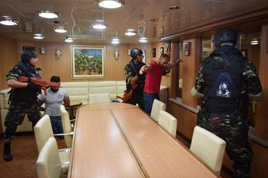 | Keywords: phoenix express 2016 phoenixexpress2016 souda bay soudabay indoor 160521-N-XT273-619 MEDITERRANEAN SEA (May 21, 2016) Royal Moroccan Navy boarding teams participate in a mock visit, board, search, and seizure boarding drill aboard the Italian Patrol Ship Cigala Fulgosi P490 during Exercise Phoenix Express 2016 aboard the Hellenic Navy training ship ARIS May 21. Phoenix Express is a U.S. Africa Command-sponsored multinational maritime exercise designed to increase maritime safety and security in the Mediterranean. (U.S. Navy photo by Mass Communication Specialist 2nd Class Justin Stumberg/Released) 160521-N-XT273-619 MEDITERRANEAN SEA (May 21, 2016) Royal Moroccan Navy boarding teams participate in a mock visit, board, search, and seizure boarding drill aboard the Italian Patrol Ship Cigala Fulgosi P490 during Exercise Phoenix Express 2016 aboard the Hellenic Navy training ship ARIS May 21. Phoenix Express is a U.S. Africa Command-sponsored multinational maritime exercise designed to increase maritime safety and security in the Mediterranean. (U.S. Navy photo by Mass Communication Specialist 2nd Class Justin Stumberg/Released) |