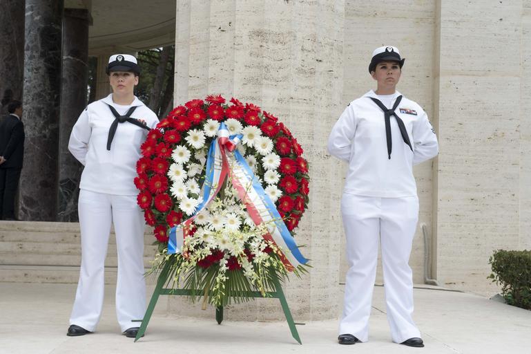 | Keywords: 160529-N-TC720-501 160529-N-TC720-501.jpg en 160529-N-TC720-501 NETTUNO Italy May 29 2016 Gunner's Mate 2nd Class Samantha Canchola from Chicago left and Gunner's Mate 1st Class Kali Morris from Doylestown Ohio stationed aboard USS Donald Cook DDG 75 stand next to a wreath delivered on behalf of the United States during the Memorial Day ceremony at Sicily-Rome American Cemetery During the ceremony veterans service members students and families gathered to honor and pay tribute to those who gave their lives during the liberation of Italy in 1943 U S Navy photo by Mass Communication Specialist 2nd Class Mat Murch/Released Unit Navy Media Content Services DVIDS Tags NATO; Italy; NSA Naples; Europe; NPASE-East; Sailors; Marines; U S Navy; NMCS; DVIDS Bulk Import; Navy Public Affairs; Navy MC 2016-05-29 Petty Officer 2nd Class Matthew Murch https //www dvidshub net/image/2627071/160529-n-tc720-501 160529-N-TC720-501 2016-06-01 00 18 NETTUNO IT PD-USGov-Military-Navy USS Donald Cook DDG-75 Images from DoD uploaded by Fæ |
