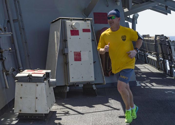 | Keywords: 160530-N-GP524-051 160530-N-GP524-051.jpg en 160530-N-GP524-051 MEDITERRANEAN SEA May 30 2016 USS Stout DDG 55 Command Master Chief Ron Glass runs during the Memorial Day MURPH Challenge honoring the fallen Lt Michael Murphy through physical fitness while transiting the Mediterranean Sea May 30 2016 Stout an Arleigh Burke-class guided-missile destroyer deployed as part of the Eisenhower Carrier Strike Group is conducting naval operations in the U S 6th Fleet area of operations in support of U S national security interests in Europe U S Navy photo by Mass Communication Specialist 3rd Class Bill Dodge/Released Unit Navy Media Content Services DVIDS Tags 6th Fleet; Navy; Sailor; U S Navy; 5th Fleet; deployment; NMCS; DVIDS Bulk Import; USS S 2016-05-30 Petty Officer 3rd Class William Dodge https //www dvidshub net/image/2631464/160530-n-gp524-051 160530-N-GP524-051 2016-06-03 00 01 ATLANTIC OCEAN PD-USGov-Military-Navy USS Stout DDG-55 Images from DoD uploaded by Fæ |