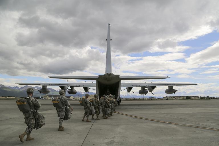 Keywords: arctic aurora 2016 arcticaurora2016 airborne 4th infantry brigade combat team (airborne) 4thinfantrybrigadecombatteamairborne 25th infantry division 25thinfantrydivision kc-130j super hercules kc130jsuperhercules japanese ground self defense force japanesegroundselfdefenseforce joint base elmendorf-richardson jointbaseelmendorfrichardson alaska usa us outdoor Paratroopers assigned to the 3rd Battalion, 509th Parachute Infantry Regiment, board a KC-130J Super Hercules while conducting airborne operations during Arctic Aurora 2016 at Joint Base Elmendorf-Richardson, Alaska, June 2, 2016. Arctic Aurora 2016 is a yearly bilateral training exercise, involving elements of the 4th Infantry Brigade Combat Team (Airborne), 25th Infantry Division and the Japanese Ground Self Defense Force, that promotes interoperability by conducting combined small unit airborne proficiency operations and basic small arms marksmanship. (U.S. Air Force photo/Alejandro Pena) Paratroopers assigned to the 3rd Battalion, 509th Parachute Infantry Regiment, board a KC-130J Super Hercules while conducting airborne operations during Arctic Aurora 2016 at Joint Base Elmendorf-Richardson, Alaska, June 2, 2016. Arctic Aurora 2016 is a yearly bilateral training exercise, involving elements of the 4th Infantry Brigade Combat Team (Airborne), 25th Infantry Division and the Japanese Ground Self Defense Force, that promotes interoperability by conducting combined small unit airborne proficiency operations and basic small arms marksmanship. (U.S. Air Force photo/Alejandro Pena) |