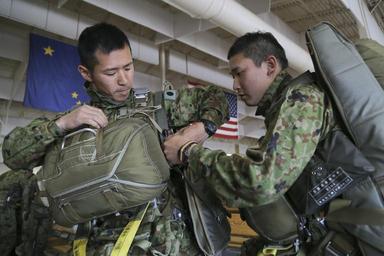 Keywords: arctic aurora 2016 arcticaurora2016 airborne 4th infantry brigade combat team (airborne) 4thinfantrybrigadecombatteamairborne 25th infantry division 25thinfantrydivision kc-130j super hercules kc130jsuperhercules japanese ground self defense force japanesegroundselfdefenseforce joint base elmendorf-richardson jointbaseelmendorfrichardson alaska usa us people Japanese Ground Self Defense Force paratroopers don their jump gear before conducting airborne operations during Arctic Aurora 2016 at Joint Base Elmendorf-Richardson, Alaska, June 2, 2016. Arctic Aurora 2016 is a yearly bilateral training exercise, involving elements of the 4th Infantry Brigade Combat Team (Airborne), 25th Infantry Division and the Japanese Ground Self Defense Force, that promotes interoperability by conducting combined small unit airborne proficiency operations and basic small arms marksmanship. (U.S. Air Force photo/Alejandro Pena) Japanese Ground Self Defense Force paratroopers don their jump gear before conducting airborne operations during Arctic Aurora 2016 at Joint Base Elmendorf-Richardson, Alaska, June 2, 2016. Arctic Aurora 2016 is a yearly bilateral training exercise, involving elements of the 4th Infantry Brigade Combat Team (Airborne), 25th Infantry Division and the Japanese Ground Self Defense Force, that promotes interoperability by conducting combined small unit airborne proficiency operations and basic small arms marksmanship. (U.S. Air Force photo/Alejandro Pena) |