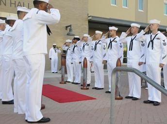 Keywords: 160607-N-GA424-012 160607-N-GA424-012.jpg en SAN ANTONIO June 7 2016 Side boys salute during the playing of Taps at a ceremony to commemorate the Battle of Midway conducted by Navy Medicine Training Support Center NMTSC outside of the hospital corpsman schoolhouse on Joint Base San Antonio - Fort Sam Houston NMTSC conducted the ceremony and wreath laying to commemorate the 74th anniversary of the decisive battle and honor those who paid the ultimate sacrifice U S Navy photo by Mass Communication Specialist 1st Class Jacquelyn D Childs/Released <br>Unit Navy Medicine Education and Training Command 2016-06-07 Petty Officer 1st Class Jacquelyn Childs https //www dvidshub net/image/2641565/160607-n-ga424-012 160607-N-GA424-012 2016-06-08 11 26 SAN ANTONIO TX US PD-USGov-Military-Navy Joint Base San Antonio Images from DoD uploaded by Fæ |