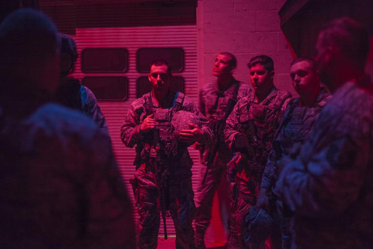 | Keywords: usaf u.s. air force usairforce air national guard airnationalguard new jersey newjersey 177th security forces squadron 177thsecurityforcessquadron m4 training joint base mcguire-dix-lakehurst jointbasemcguiredixlakehurst jt2dc n.j. nj usa public domain publicdomain free U.S. Air Force Airmen from the New Jersey Air National Guard's 177th Security Forces Squadron are briefed on tactical operations in an indoor Military Operations in Urban Terrain (MOUT) site at the New Jersey National Guard's Joint Training & Training Development Center (JT2DC), Joint Base McGuire-Dix-Lakehurst, N.J., June 16, 2016. The 177th Security Forces Squadron was utilizing the ability for the JT2DC's training areas to simulate low-light conditions in an urban environment. The red and blue lighting is meant to simulate a moonlit night as seen through night vision devices. (U.S. Air National Guard photo by Tech. Sgt. Matt Hecht/Released) U.S. Air Force Airmen from the New Jersey Air National Guard's 177th Security Forces Squadron are briefed on tactical operations in an indoor Military Operations in Urban Terrain (MOUT) site at the New Jersey National Guard's Joint Training & Training Development Center (JT2DC), Joint Base McGuire-Dix-Lakehurst, N.J., June 16, 2016. The 177th Security Forces Squadron was utilizing the ability for the JT2DC's training areas to simulate low-light conditions in an urban environment. The red and blue lighting is meant to simulate a moonlit night as seen through night vision devices. (U.S. Air National Guard photo by Tech. Sgt. Matt Hecht/Released) |