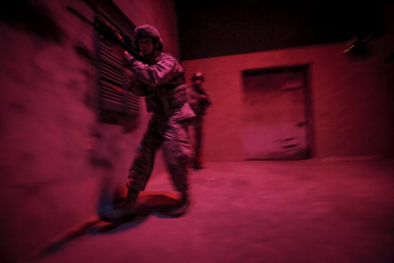 | Keywords: usaf u.s. air force usairforce air national guard airnationalguard new jersey newjersey 177th security forces squadron 177thsecurityforcessquadron m4 training joint base mcguire-dix-lakehurst jointbasemcguiredixlakehurst jt2dc n.j. nj usa public domain publicdomain free U.S. Air Force Airmen from the New Jersey Air National Guard's 177th Security Forces Squadron maneuver through an indoor Military Operations in Urban Terrain (MOUT) site during training at the New Jersey National Guard's Joint Training & Training Development Center (JT2DC), Joint Base McGuire-Dix-Lakehurst, N.J., June 16, 2016. The 177th Security Forces Squadron was utilizing the ability for the JT2DC's training areas to simulate low-light conditions in an urban environment. The red and blue lighting simulates a moonlit night as seen through night vision devices. (U.S. Air National Guard photo by Tech. Sgt. Matt Hecht/Released) U.S. Air Force Airmen from the New Jersey Air National Guard's 177th Security Forces Squadron maneuver through an indoor Military Operations in Urban Terrain (MOUT) site during training at the New Jersey National Guard's Joint Training & Training Development Center (JT2DC), Joint Base McGuire-Dix-Lakehurst, N.J., June 16, 2016. The 177th Security Forces Squadron was utilizing the ability for the JT2DC's training areas to simulate low-light conditions in an urban environment. The red and blue lighting simulates a moonlit night as seen through night vision devices. (U.S. Air National Guard photo by Tech. Sgt. Matt Hecht/Released) |