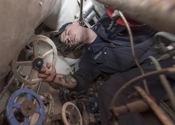 Keywords: uss wasp usswasp (lhd 1) lhd1 atlantic ocean atlanticocean navy mmr main machinery room mainmachineryroom boiler va us usa 160627-N-JW440-131 ATLANTIC OCEAN (June 27, 2016) Machinist's Mate 3rd Class Aleksa Dragic turns a valve inside the main machinery room aboard the amphibious assault ship USS Wasp (LHD 1). Wasp is deployed with the Wasp Amphibious Ready Group to support maritime security and theater security cooperation efforts in the U.S. 5th and 6th Fleet areas of operation. (U.S. Navy photo by Mass Communication Specialist 3rd Class Rawad Madanat/Released) 160627-N-JW440-131 ATLANTIC OCEAN (June 27, 2016) Machinist's Mate 3rd Class Aleksa Dragic turns a valve inside the main machinery room aboard the amphibious assault ship USS Wasp (LHD 1). Wasp is deployed with the Wasp Amphibious Ready Group to support maritime security and theater security cooperation efforts in the U.S. 5th and 6th Fleet areas of operation. (U.S. Navy photo by Mass Communication Specialist 3rd Class Rawad Madanat/Released) |