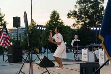 | Keywords: capitol steps capitolsteps commodores dc navy navy band navyband band big band bigband concert jazz military music summer swing washington 160711-N-DD694-006 WASHINGTON (July 11, 2016) Musician 1st Class Kristine Hsia, of Holbrook, N.Y., sings with the United States Navy Band Commodores jazz ensemble. The Navy Band presents concerts at the Capitol on Monday evenings throughout the summer. (U.S. Navy photo by Musician 1st Class Brittany Foster/Released) 160711-N-DD694-006 WASHINGTON (July 11, 2016) Musician 1st Class Kristine Hsia, of Holbrook, N.Y., sings with the United States Navy Band Commodores jazz ensemble. The Navy Band presents concerts at the Capitol on Monday evenings throughout the summer. (U.S. Navy photo by Musician 1st Class Brittany Foster/Released) |