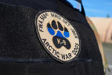 MAKE A MEME View Large Image Military Working Dog patch is seen on the vest of Army Cpl. Jared Schultz during quarterly law enforcement training with the 545th Military Police Detachment, 17th Combat Sustainment Support Battalion, U.S. Army Alaska, Wednesday, July 13, ...