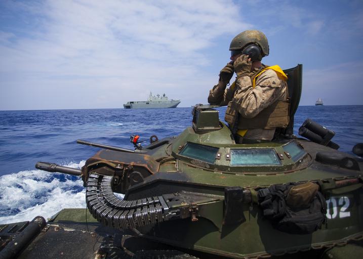 | Keywords: united states unitedstates us outdoor Cpl. Ryan Dills communicates with other assault amphibious vehicles while traveling from amphibious assault ship USS San Diego to Royal Australian Navy Canberra class amphibious ship HMAS Canberra (L02) in the Pacific Ocean, July, 18 2016. The Marines are participating in the Rim of the Pacific 2016, a multinational military exercise, from June 29 to Aug. 4 in and around the Hawaiian Islands. (U.S. Marine Corps photo by Staff Sgt. Christopher Giannetti) www.dvidshub.net Cpl. Ryan Dills communicates with other assault amphibious vehicles while traveling from amphibious assault ship USS San Diego to Royal Australian Navy Canberra class amphibious ship HMAS Canberra (L02) in the Pacific Ocean, July, 18 2016. The Marines are participating in the Rim of the Pacific 2016, a multinational military exercise, from June 29 to Aug. 4 in and around the Hawaiian Islands. (U.S. Marine Corps photo by Staff Sgt. Christopher Giannetti) www.dvidshub.net |