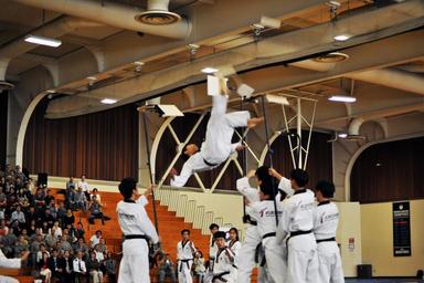 Keywords: taekwondo u.s. army usarmy u.s. marine corps usmarinecorps u.s. navy usnavy u.s. air force usairforce presidio of monterey presidioofmonterey korea indoor The Kukkiwon Taekwondo Demonstration Team from Korea performed a traditional martial arts demonstration at the Presidio of Monterey, California, Price Fitness Center Aug. 3. The Defense Language Institute Foreign Language Center Korean School hosted the event. Following the demonstration, the team answered questions in Korean for the benefit of the students. Kukkiwon, known as the World Taekwondo Headquarters, is the center of taekwondo culture in Korea with teams touring about 120 countries as ambassadors of the traditional martial art for the past 40 years. (U.S. Army photo by Patrick Bray/Released) The Kukkiwon Taekwondo Demonstration Team from Korea performed a traditional martial arts demonstration at the Presidio of Monterey, California, Price Fitness Center Aug. 3. The Defense Language Institute Foreign Language Center Korean School hosted the event. Following the demonstration, the team answered questions in Korean for the benefit of the students. Kukkiwon, known as the World Taekwondo Headquarters, is the center of taekwondo culture in Korea with teams touring about 120 countries as ambassadors of the traditional martial art for the past 40 years. (U.S. Army photo by Patrick Bray/Released) |