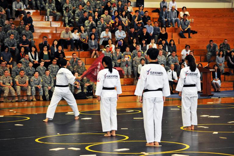 Keywords: taekwondo u.s. army usarmy u.s. marine corps usmarinecorps u.s. navy usnavy u.s. air force usairforce presidio of monterey presidioofmonterey korea sport team sport The Kukkiwon Taekwondo Demonstration Team from Korea performed a traditional martial arts demonstration at the Presidio of Monterey, California, Price Fitness Center Aug. 3. The Defense Language Institute Foreign Language Center Korean School hosted the event. Following the demonstration, the team answered questions in Korean for the benefit of the students. Kukkiwon, known as the World Taekwondo Headquarters, is the center of taekwondo culture in Korea with teams touring about 120 countries as ambassadors of the traditional martial art for the past 40 years. (U.S. Army photo by Patrick Bray/Released) The Kukkiwon Taekwondo Demonstration Team from Korea performed a traditional martial arts demonstration at the Presidio of Monterey, California, Price Fitness Center Aug. 3. The Defense Language Institute Foreign Language Center Korean School hosted the event. Following the demonstration, the team answered questions in Korean for the benefit of the students. Kukkiwon, known as the World Taekwondo Headquarters, is the center of taekwondo culture in Korea with teams touring about 120 countries as ambassadors of the traditional martial art for the past 40 years. (U.S. Army photo by Patrick Bray/Released) |