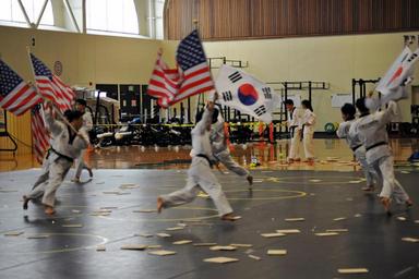 Keywords: taekwondo u.s. army usarmy u.s. marine corps usmarinecorps u.s. navy usnavy u.s. air force usairforce presidio of monterey presidioofmonterey korea The Kukkiwon Taekwondo Demonstration Team from Korea performed a traditional martial arts demonstration at the Presidio of Monterey, California, Price Fitness Center Aug. 3. The Defense Language Institute Foreign Language Center Korean School hosted the event. Following the demonstration, the team answered questions in Korean for the benefit of the students. Kukkiwon, known as the World Taekwondo Headquarters, is the center of taekwondo culture in Korea with teams touring about 120 countries as ambassadors of the traditional martial art for the past 40 years. (U.S. Army photo by Patrick Bray/Released) The Kukkiwon Taekwondo Demonstration Team from Korea performed a traditional martial arts demonstration at the Presidio of Monterey, California, Price Fitness Center Aug. 3. The Defense Language Institute Foreign Language Center Korean School hosted the event. Following the demonstration, the team answered questions in Korean for the benefit of the students. Kukkiwon, known as the World Taekwondo Headquarters, is the center of taekwondo culture in Korea with teams touring about 120 countries as ambassadors of the traditional martial art for the past 40 years. (U.S. Army photo by Patrick Bray/Released) |