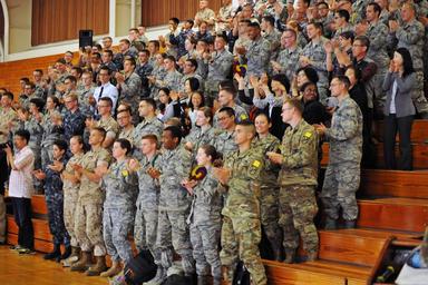 Keywords: taekwondo u.s. army usarmy u.s. marine corps usmarinecorps u.s. navy usnavy u.s. air force usairforce presidio of monterey presidioofmonterey korea auditorium The Kukkiwon Taekwondo Demonstration Team from Korea performed a traditional martial arts demonstration at the Presidio of Monterey, California, Price Fitness Center Aug. 3. The Defense Language Institute Foreign Language Center Korean School hosted the event. Following the demonstration, the team answered questions in Korean for the benefit of the students. Kukkiwon, known as the World Taekwondo Headquarters, is the center of taekwondo culture in Korea with teams touring about 120 countries as ambassadors of the traditional martial art for the past 40 years. (U.S. Army photo by Patrick Bray/Released) The Kukkiwon Taekwondo Demonstration Team from Korea performed a traditional martial arts demonstration at the Presidio of Monterey, California, Price Fitness Center Aug. 3. The Defense Language Institute Foreign Language Center Korean School hosted the event. Following the demonstration, the team answered questions in Korean for the benefit of the students. Kukkiwon, known as the World Taekwondo Headquarters, is the center of taekwondo culture in Korea with teams touring about 120 countries as ambassadors of the traditional martial art for the past 40 years. (U.S. Army photo by Patrick Bray/Released) |