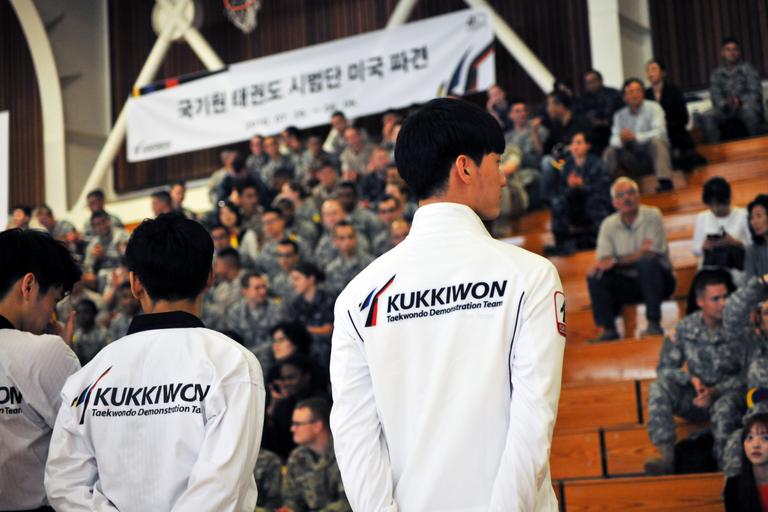 Keywords: taekwondo u.s. army usarmy u.s. marine corps usmarinecorps u.s. navy usnavy u.s. air force usairforce presidio of monterey presidioofmonterey korea outdoor The Kukkiwon Taekwondo Demonstration Team from Korea performed a traditional martial arts demonstration at the Presidio of Monterey, California, Price Fitness Center Aug. 3. The Defense Language Institute Foreign Language Center Korean School hosted the event. Following the demonstration, the team answered questions in Korean for the benefit of the students. Kukkiwon, known as the World Taekwondo Headquarters, is the center of taekwondo culture in Korea with teams touring about 120 countries as ambassadors of the traditional martial art for the past 40 years. (U.S. Army photo by Patrick Bray/Released) The Kukkiwon Taekwondo Demonstration Team from Korea performed a traditional martial arts demonstration at the Presidio of Monterey, California, Price Fitness Center Aug. 3. The Defense Language Institute Foreign Language Center Korean School hosted the event. Following the demonstration, the team answered questions in Korean for the benefit of the students. Kukkiwon, known as the World Taekwondo Headquarters, is the center of taekwondo culture in Korea with teams touring about 120 countries as ambassadors of the traditional martial art for the past 40 years. (U.S. Army photo by Patrick Bray/Released) |