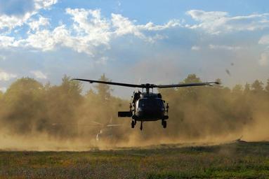 Keywords: 10th cab 10thcab army aviation armyaviation fort drum fortdrum 2-10 aslt 210aslt new york newyork united states unitedstates us outdoor Two UH-60 Black Hawk helicopters from 2nd Battalion, 10th Aviation Regiment, 10th Combat Aviation Brigade land at the Forward Arming and Refueling Point (FARP) for a 'hot' refuel during a battalion validation training exercise at Fort Drum, New York, Aug. 5, 2016. (Photo by Capt. Linda Gerron ) www.dvidshub.net Two UH-60 Black Hawk helicopters from 2nd Battalion, 10th Aviation Regiment, 10th Combat Aviation Brigade land at the Forward Arming and Refueling Point (FARP) for a 'hot' refuel during a battalion validation training exercise at Fort Drum, New York, Aug. 5, 2016. (Photo by Capt. Linda Gerron ) www.dvidshub.net