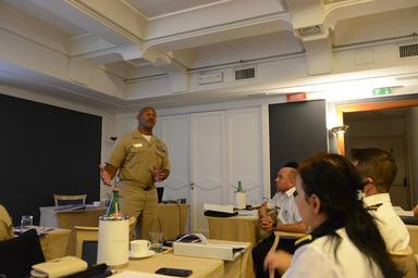 | Keywords: fleet master chief raymond d. kemp fleetmasterchiefraymonddkemp naples italy indoor room 160919-N-SS492-181 NAPLES, Italy (Sept. 19, 2016) U.S. Naval Forces Europe-Africa Fleet Master Chief Raymond D. Kemp Sr. provides remarks during the week-long Eurasian Partnership Senior Non-Commissioned Officer Development workshop, being held in Naples, Italy, Sept. 19, 2016. U.S. Naval Forces Europe-Africa, headquartered in Naples, Italy, oversees joint and naval operations, often in concert with allied, joint, and interagency partners, in order to advance U.S. national interests, security and stability in Europe and Africa. (U.S. Navy photo by Chief Mass Communication Specialist Brian P. Biller/Released) 160919-N-SS492-181 NAPLES, Italy (Sept. 19, 2016) U.S. Naval Forces Europe-Africa Fleet Master Chief Raymond D. Kemp Sr. provides remarks during the week-long Eurasian Partnership Senior Non-Commissioned Officer Development workshop, being held in Naples, Italy, Sept. 19, 2016. U.S. Naval Forces Europe-Africa, headquartered in Naples, Italy, oversees joint and naval operations, often in concert with allied, joint, and interagency partners, in order to advance U.S. national interests, security and stability in Europe and Africa. (U.S. Navy photo by Chief Mass Communication Specialist Brian P. Biller/Released) |