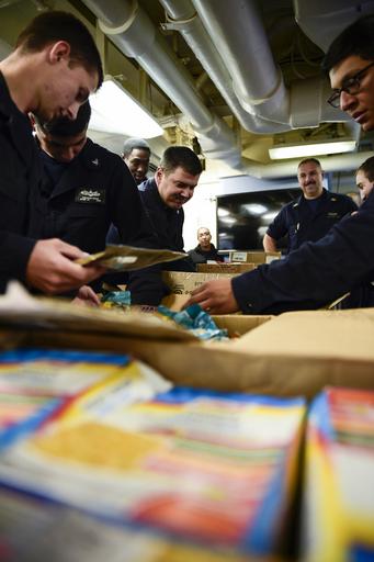 Keywords: navy uss ross (ddg 71) ussrossddg71 ddg 71 ddg71 u.s. 6th fleet us6thfleet c6f ctf 65 ctf65 patrol mediterranean sea mediterraneansea indoor 160920-N-FP878-130MEDITERRANEAN SEA (Sept. 20, 2016) Sailor’s receive care packages from the family readiness group in Rota, Spain, aboard USS Ross (DDG 71) Sept. 20, 2016. Ross, an Arleigh Burke-class guided-missile destroyer, forward-deployed to Rota, Spain, is conducting naval operations in the U.S. 6th Fleet area of operations in support of U.S. national security interests in Europe and Africa. (U.S. Navy photo by Mass Communication Specialist 1st Class Theron J. Godbold/Released) 160920-N-FP878-130MEDITERRANEAN SEA (Sept. 20, 2016) Sailor’s receive care packages from the family readiness group in Rota, Spain, aboard USS Ross (DDG 71) Sept. 20, 2016. Ross, an Arleigh Burke-class guided-missile destroyer, forward-deployed to Rota, Spain, is conducting naval operations in the U.S. 6th Fleet area of operations in support of U.S. national security interests in Europe and Africa. (U.S. Navy photo by Mass Communication Specialist 1st Class Theron J. Godbold/Released) |