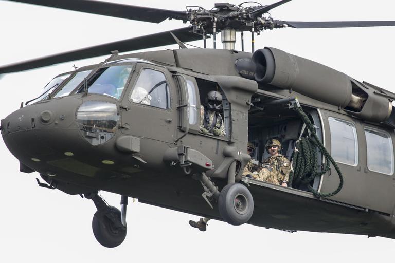 Keywords: usa usaf u.s. air force usairforce united states air force unitedstatesairforce air force airforce army joint training jointtraining exercise rail yard exerciserailyard tacp tactical air control party tacticalaircontrolparty jtac joint terminal air controller jointterminalaircontroller special forces specialforces soldier airman warren grove gunnery range warrengrovegunneryrange n.j. nj public domain publicdomain vehicle aircraft airplane rotor blade outdoor A New Jersey Army National Guard Black Hawk helicopter from the 1-150 Assault Helicopter Battalion prepares to unload Airmen from the 227th Air Support Operations Squadron for an air assault mission during Exercise Rail Yard, on Warren Grove Gunnery Range, N.J., Sept 21, 2016. Exercise Rail Yard is a joint training mission with active duty Air Force and Air National Guard TACP squadrons, as well as soldiers from the 7th, 10th, and 19th Special Forces Groups. (U.S. Air National Guard photo by Tech. Sgt. Matt Hecht/Released) A New Jersey Army National Guard Black Hawk helicopter from the 1-150 Assault Helicopter Battalion prepares to unload Airmen from the 227th Air Support Operations Squadron for an air assault mission during Exercise Rail Yard, on Warren Grove Gunnery Range, N.J., Sept 21, 2016. Exercise Rail Yard is a joint training mission with active duty Air Force and Air National Guard TACP squadrons, as well as soldiers from the 7th, 10th, and 19th Special Forces Groups. (U.S. Air National Guard photo by Tech. Sgt. Matt Hecht/Released) |