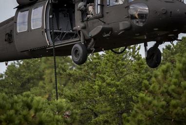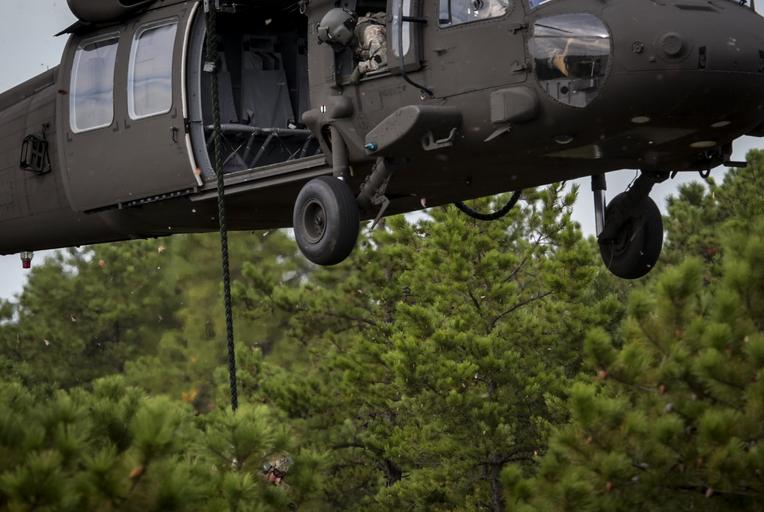 Keywords: usa usaf u.s. air force usairforce united states air force unitedstatesairforce air force airforce army joint training jointtraining exercise rail yard exerciserailyard tacp tactical air control party tacticalaircontrolparty jtac joint terminal air controller jointterminalaircontroller special forces specialforces soldier airman warren grove gunnery range warrengrovegunneryrange n.j. nj public domain publicdomain outdoor U.S. Air Force Tactical Air Control Party Airmen from the 227th Air Support Operations Squadron fast rope from a New Jersey Army National Guard UH-60 Black Hawk during Exercise Rail Yard, on Warren Grove Gunnery Range, N.J., Sept 21, 2016. Exercise Rail Yard is a joint training mission with active duty Air Force and Air National Guard TACP squadrons, as well as soldiers from the 7th, 10th, and 19th Special Forces Groups. (U.S. Air National Guard photo by Tech. Sgt. Matt Hecht/Released) U.S. Air Force Tactical Air Control Party Airmen from the 227th Air Support Operations Squadron fast rope from a New Jersey Army National Guard UH-60 Black Hawk during Exercise Rail Yard, on Warren Grove Gunnery Range, N.J., Sept 21, 2016. Exercise Rail Yard is a joint training mission with active duty Air Force and Air National Guard TACP squadrons, as well as soldiers from the 7th, 10th, and 19th Special Forces Groups. (U.S. Air National Guard photo by Tech. Sgt. Matt Hecht/Released) |
