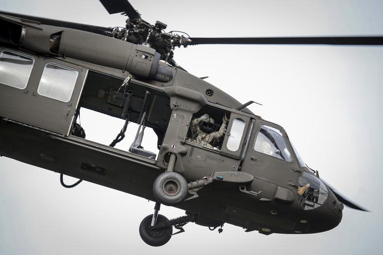 Keywords: usa usaf u.s. air force usairforce united states air force unitedstatesairforce air force airforce army joint training jointtraining exercise rail yard exerciserailyard tacp tactical air control party tacticalaircontrolparty jtac joint terminal air controller jointterminalaircontroller special forces specialforces soldier airman warren grove gunnery range warrengrovegunneryrange n.j. nj public domain publicdomain vehicle aircraft rotor blade outdoor A New Jersey Army National Guard Black Hawk helicopter from the 1-150 Assault Helicopter Battalion departs after dropping off Airmen from the 227th Air Support Operations Squadron for an air assault mission during Exercise Rail Yard, on Warren Grove Gunnery Range, N.J., Sept 21, 2016. Exercise Rail Yard is a joint training mission with active duty Air Force and Air National Guard TACP squadrons, as well as soldiers from the 7th, 10th, and 19th Special Forces Groups. (U.S. Air National Guard photo by Tech. Sgt. Matt Hecht/Released) A New Jersey Army National Guard Black Hawk helicopter from the 1-150 Assault Helicopter Battalion departs after dropping off Airmen from the 227th Air Support Operations Squadron for an air assault mission during Exercise Rail Yard, on Warren Grove Gunnery Range, N.J., Sept 21, 2016. Exercise Rail Yard is a joint training mission with active duty Air Force and Air National Guard TACP squadrons, as well as soldiers from the 7th, 10th, and 19th Special Forces Groups. (U.S. Air National Guard photo by Tech. Sgt. Matt Hecht/Released) |