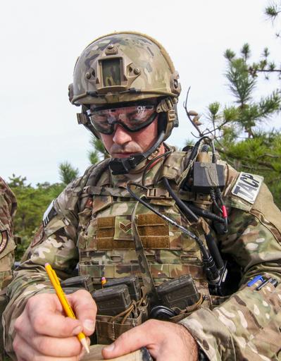 Keywords: usa usaf u.s. air force usairforce united states air force unitedstatesairforce air force airforce army joint training jointtraining exercise rail yard exerciserailyard tacp tactical air control party tacticalaircontrolparty jtac joint terminal air controller jointterminalaircontroller special forces specialforces soldier airman warren grove gunnery range warrengrovegunneryrange n.j. nj public domain publicdomain outdoor people A U.S. Air Force Tactical Air Control Party Airman from the 227th Air Support Operations Squadron takes down a 9-line MEDEVAC request during Exercise Rail Yard, on Warren Grove Gunnery Range, N.J., Sept 21, 2016. Exercise Rail Yard is a joint training mission with active duty Air Force and Air National Guard TACP squadrons, as well as soldiers from the 7th, 10th, and 19th Special Forces Groups. (U.S. Air National Guard photo by Tech. Sgt. Matt Hecht/Released) A U.S. Air Force Tactical Air Control Party Airman from the 227th Air Support Operations Squadron takes down a 9-line MEDEVAC request during Exercise Rail Yard, on Warren Grove Gunnery Range, N.J., Sept 21, 2016. Exercise Rail Yard is a joint training mission with active duty Air Force and Air National Guard TACP squadrons, as well as soldiers from the 7th, 10th, and 19th Special Forces Groups. (U.S. Air National Guard photo by Tech. Sgt. Matt Hecht/Released) |