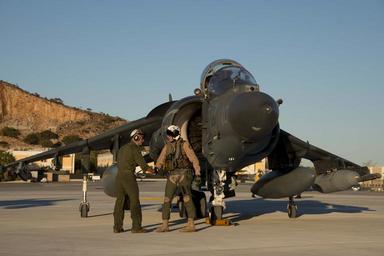 Keywords: outdoor 161013-N-XR948-017 SOUDA BAY, Greece (Oct. 13 2016) â An AV-8B Harrier pilot and his plane handler, from Marine Corps Air Station Cherry Point, shake hands following his arrival at Naval Support Activity (NSA) Souda Bay, Oct. 13, 2016. NSA Souda Bay enables the forward operations and responsiveness of U.S. and allied forces in support of Navy Region, Europe, Africa, and Southwest Asia's mission to provide services to the fleet, fighter, and family. (U.S. Navy photo by Petty Officer 2nd Class Chase Martin/Released) 161013-N-XR948-017 SOUDA BAY, Greece (Oct. 13 2016) â An AV-8B Harrier pilot and his plane handler, from Marine Corps Air Station Cherry Point, shake hands following his arrival at Naval Support Activity (NSA) Souda Bay, Oct. 13, 2016. NSA Souda Bay enables the forward operations and responsiveness of U.S. and allied forces in support of Navy Region, Europe, Africa, and Southwest Asia's mission to provide services to the fleet, fighter, and family. (U.S. Navy photo by Petty Officer 2nd Class Chase Martin/Released) |