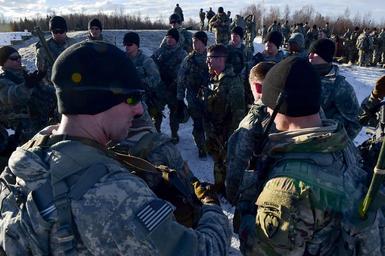Keywords: paratroopers; training; alaska; jber; joint base elmendorf-richa paratrooperstrainingalaskajberjointbaseelmendorfricha joint base elmendorf-richardson jointbaseelmendorfrichardson alaska usa paratroopers; training; alaska; jber; joint base elmendorf-richardson; live fire; u.s. army alaska; norcom; northern command; airborne paratrooperstrainingalaskajberjointbaseelmendorfrichardsonlivefireusarmyalaskanorcomnortherncommandairborne outdoor people Paratroopers assigned to Baker Company, 3rd Battalion, 509th Parachute Infantry Regiment, 4th Infantry Brigade Combat Team (Airborne), 25th Infantry Division, U.S. Army Alaska, gather for an after-action briefing after conducting live-fire and movement-to-contact operations on the Infantry Squad Battle Course at Joint Base Elmendorf-Richardson, Alaska, Nov. 8, 2016. The soldiers focused on core infantry skills such as fire team movement, communication, shifting fire, and once on the objective identifying and eliminating weapons caches and treating and evacuating casualties. (U.S. Air Force photo/Justin Connaher) Paratroopers assigned to Baker Company, 3rd Battalion, 509th Parachute Infantry Regiment, 4th Infantry Brigade Combat Team (Airborne), 25th Infantry Division, U.S. Army Alaska, gather for an after-action briefing after conducting live-fire and movement-to-contact operations on the Infantry Squad Battle Course at Joint Base Elmendorf-Richardson, Alaska, Nov. 8, 2016. The soldiers focused on core infantry skills such as fire team movement, communication, shifting fire, and once on the objective identifying and eliminating weapons caches and treating and evacuating casualties. (U.S. Air Force photo/Justin Connaher) |