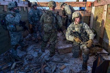 Keywords: paratroopers; training; alaska; jber; joint base elmendorf-richa paratrooperstrainingalaskajberjointbaseelmendorfricha joint base elmendorf-richardson jointbaseelmendorfrichardson alaska usa paratroopers; training; alaska; jber; joint base elmendorf-richardson; live fire; u.s. army alaska; norcom; northern command; airborne paratrooperstrainingalaskajberjointbaseelmendorfrichardsonlivefireusarmyalaskanorcomnortherncommandairborne outdoor Army Staff Sgt. Jesse Parker, right, assigned to A Company, 6th Brigade Engineer Battalion (Airborne), 4th Infantry Brigade Combat Team (Airborne), 25th Infantry Division, U.S. Army Alaska, wait in a bunker assigned as a casualty collection point for an after-action review following live-fire and movement-to-contact operations on the Infantry Squad Battle Course at Joint Base Elmendorf-Richardson, Alaska, Nov. 8, 2016. The soldiers focused on core infantry skills such as fire team movement, communication, shifting fire, and once on the objective identifying and eliminating weapons caches and treating and evacuating casualties. (U.S. Air Force photo/Justin Connaher) Army Staff Sgt. Jesse Parker, right, assigned to A Company, 6th Brigade Engineer Battalion (Airborne), 4th Infantry Brigade Combat Team (Airborne), 25th Infantry Division, U.S. Army Alaska, wait in a bunker assigned as a casualty collection point for an after-action review following live-fire and movement-to-contact operations on the Infantry Squad Battle Course at Joint Base Elmendorf-Richardson, Alaska, Nov. 8, 2016. The soldiers focused on core infantry skills such as fire team movement, communication, shifting fire, and once on the objective identifying and eliminating weapons caches and treating and evacuating casualties. (U.S. Air Force photo/Justin Connaher) |