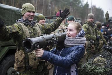 MAKE A MEME View Large Image Lithuanian girl holds a rocket launcher at a static display in Visaginas, Lithuania, Nov. 26, 2016. Militaries from several countries taking part in Exercise Iron Sword 16, including United States, Lithuania, United Kingdom, Poland, ...
