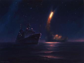 MAKE A MEME View Large Image The oil on canvas painting illustrates the navigation test support ship USNS Waters (T-AGS 45) observing a Trident II D5 Missile launched from the Ohio-class ballistic-missile submarine USS Kentucky (SSBN 737) on a dark November evening. ...