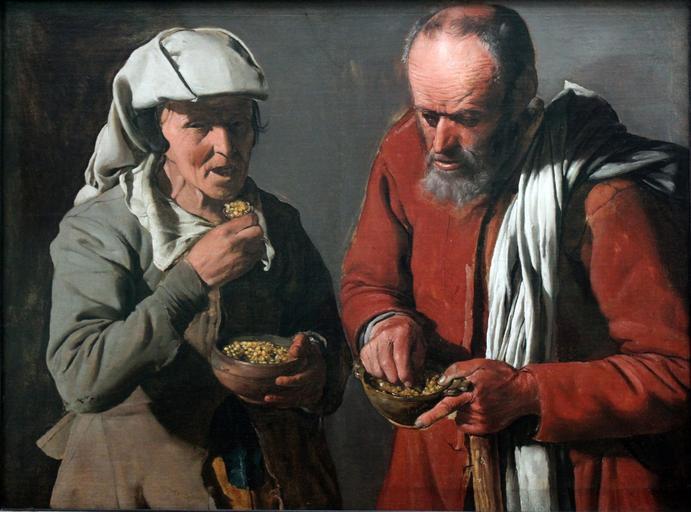 Keywords: 1622-25 de la Tour Erbsen essendes Bauernpaar anagoria.JPG Artwork Creator Georges de La Tour title Erbsen essences Bauernpaar Peasant Couple eating Peas К естьянские па ы есть го ох ca 1620 1625 oil on canvas cm 76 2 90 8 http //www spk-digital de/showDetail html id 22/bam/museum/smb/gg/00020634 22 Stiftung Preußischer Kulturbesitz<br>http //www bpk-images de/shop bpk-images de search 00020634 Accession number 76 1 own anagoria PD-old-100 DEFAULTSORT La Tour Peasant Couple eating Peas Georges de La Tour French paintings in the Gemäldegalerie Berlin Baroque paintings in the Gemäldegalerie Berlin Baroque paintings of people Eating in paintings Paintings of bearded men Paintings of men with red clothing Paintings of standing couples Paintings with grey background People with grey background in art 17th-century food drinks and cooking in painting 17th-century oil on canvas paintings in Germany 1620s paintings in the Gemäldegalerie Berlin Files by User anagoria |
