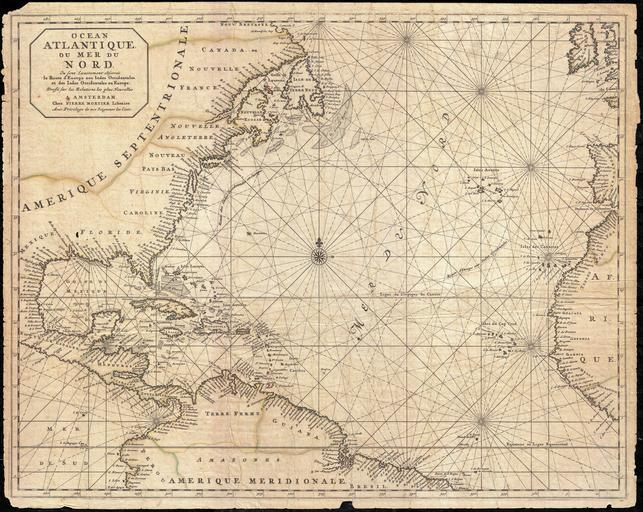 | Keywords: 1683 Mortier Map of North America, the West Indies, and the Atlantic Ocean - Geographicus - Atlantique-mortier-1693.jpg This is a rare and remarkable 1693 nautical chart of the Atlantic Ocean by Pierre Mortier Covers the North Atlantic from rough 5 degree south latitude to roughly 56 degrees north latitude Includes much of North America all of the West Indies and Caribbean Central America the northern parts of South America Western Africa Ireland and parts of Western Spain As a whole Mortier's map presents a moderately accurate picture of the Americas The coast lines particularly in North America are a unnaturally craggy Florida takes on an inverted cone aspect The barrier islands and capes off the coast of Virginia and Carolina are noted but inaccurately represented The Chesapeake Bay is slightly diminished in size The entrance to the Mississippi River is either not apparent or confused with the conjectural Rio de Spirito Sancto This river most likely associated with early entradas into Mobile Bay was confused with the Mississippi on numerous older maps Politically Mortier recognizes the French claims to Canada the British claims to the region between New York and the St Lawrence Dutch claims to New Jersey Pennsylvania and Baltimore and Spanish Claims to Florida Identifies New York Baltimore Philadelphia Staten Island Long Island Cape Hatteras Cape Look Cape Lookout Port Royal St Augustine and Havana among others Like most maritime charts this map has very little inland detail but a high level of nautical detail Identifies thousands of coastal destinations throughout as well as offshore shoals reefs and other undersea dangers Mortier additionally maps various shipping routes between Europe and the Americas This chart was composted by Pierre Mortier for issue in his extraordinary 1693 nautical atlas Le Neptune François As a side note this map with its moderate age toning distinctive rhumb lines and tattered margins looks exactly like the quintessential pirate's map - which given its issue at the height of the Great Age of Caribbean Piracy it may well have been 1693 undated Size in 24 18 75 object history credit line accession number Atlantique-mortier-1693 Mortier P <i>Le Neptune françois ou Atlas nouveau des cartes marines </i> 1693 Geographicus-source PD-Art-100 Old maps of the Americas 1690 Old maps of the Caribbean 1690 1693 maps Atlantic Old maps of the Atlantic Ocean 1690 Pierre Mortier Atlantic 1690s maps of Africa Maps in French Atlantic |