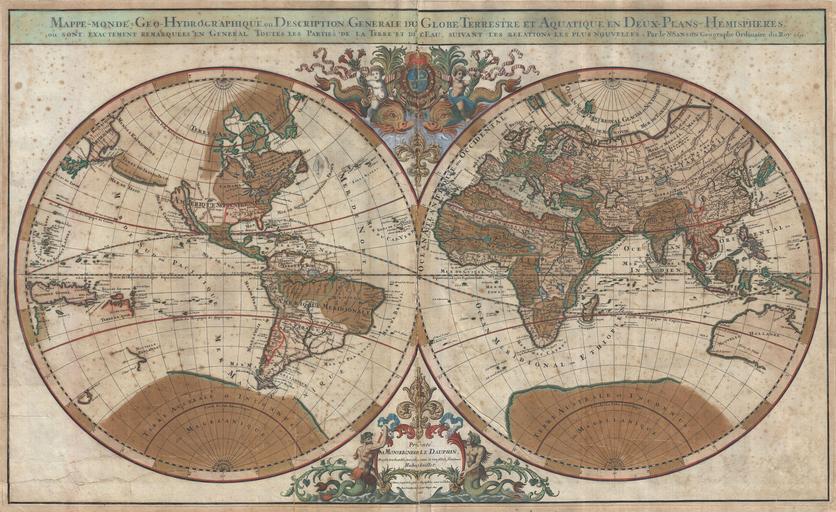 View Original:1691_Sanson_Map_of_the_World_on_Hemisphere_Projection_-_Geographicus_-_World-sanson-1691.jpg (6000x3675)