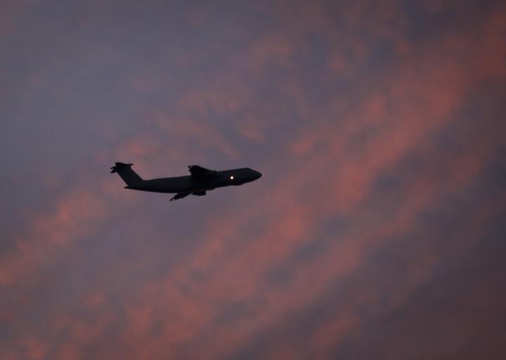 | Keywords: u.s. air force usairforce united states air force unitedstatesairforce usaf c-5 c5 galaxy sunset nj dover afb doverafb 436th airlift wing 436thairliftwing amc air mobility command airmobilitycommand joint base mcguire-dix-lakehurst jointbasemcguiredixlakehurst usa outdoor A U.S. Air Force C-5 Galaxy from the 436th Airlift Wing flies over New Jersey at sunset. The C-5, one of the largest military aircraft, provides the Air Force with heavy intercontinental strategic airlift capability. The 436th Airlift Wing is located at Dover Air Force Base, Del. (U.S. Air National Guard photo by Tech. Sgt. Matt Hecht/Released) A U.S. Air Force C-5 Galaxy from the 436th Airlift Wing flies over New Jersey at sunset. The C-5, one of the largest military aircraft, provides the Air Force with heavy intercontinental strategic airlift capability. The 436th Airlift Wing is located at Dover Air Force Base, Del. (U.S. Air National Guard photo by Tech. Sgt. Matt Hecht/Released) |