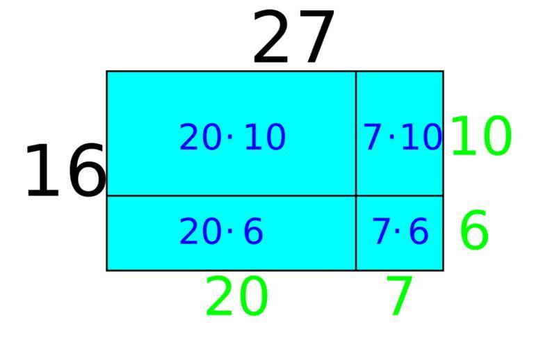 | Keywords: 16x27 Illustration with different areas 4.svg en 16x27 Illustration with different areas step 1 A few different images to illustrate how 16 27 equals 16 20+16 7 or 10 27+6 27 or 10 20+10 7+6 20+6 7 2012-06-10 own Other fields T + cc-zero SVG calculus examples Multiplication Uploaded with UploadWizard SVG files by Averater |