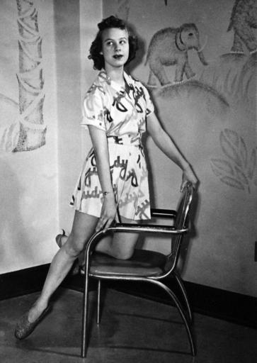 Keywords: blackandwhite monochrome indoor black and white 171-G-11-K-2: University of Idaho, Moscow, Idaho, circa WWII. This play suit, made and worn by Judith Rupp, freshman at the University of Idaho, is proof that clothes can combine smartness and wartime economy. She made it in an art design class, at a cost of 89 cents for material and her own work and ingenuity. First thing she did was to make a linoleum block out of her name, which she stamped in harmonizing colors on three yards of osnaburg (a course type of fabric). (8/25/2015). 171-G-11-K-2: University of Idaho, Moscow, Idaho, circa WWII. This play suit, made and worn by Judith Rupp, freshman at the University of Idaho, is proof that clothes can combine smartness and wartime economy. She made it in an art design class, at a cost of 89 cents for material and her own work and ingenuity. First thing she did was to make a linoleum block out of her name, which she stamped in harmonizing colors on three yards of osnaburg (a course type of fabric). (8/25/2015). |