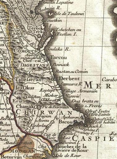 | Keywords: 1724 De L'Isle Map of Persia (Iran, Iraq, Afghanistan) - Geographicus - Persia-delisle-1724. G.jpg Artwork User Multichill/Geographicus/cartographers delisle txt A fine first edition example of Guillaume De L ™Isle ™s important 1724 map of Persia Covers from the Crimea and the Sea of Azov south to the Persian Gulf and the Straight of Ormuz and east as far as Kashmir Cachmir and Kabul Caboul This map includes modern day Iran Iraq Afghanistan Kuwait Uzbekistan Turkmenistan Tajikistan Georgia Armenia and Azerbaijan with adjacent parts of Russia Pakistan Turkey Ukraine and Kazakhstan and Arabia Cartographically De L ™Isle ™s mapping of Persia marks a significant advance in European cartographic knowledge of the region This map benefits considerably from Russian cartographic surveys and other sources no doubt smuggled to Guillaume De L ™Isle by his brother Nicholas de L ™Isle who held a cartographic position with the Russian Academy of Sciences The extent to which Russian data influenced this map is nowhere more evident than in De L ™Isle ™s remarkable rendering of the Caspian Sea “ one of the first accurate maps of the great lake to follow Van Verden ™s historic survey of 1721 Russian cartographic information is also apparent with regard to place names such as the Russian name for the Aral Sea Glouchoiye It is equally likely that De L ™Isle drew on Russian sources for his mapping of the Silk Route centers of Bukhara Samarkand and Ferghana which were known stopping points for Russian trade envoys to China For the remainder of Persia De L ™Isle most likely updated Persian and Arabic cartographic information with reports from Georgian and Armenian traders and mercenaries active throughout Persia It may be through these sources that De L ™Isle was able to add considerable geographic information regarding trade routes and place names in central Persia These include such significant advances as the identification of Terheran Tiheran the current capital of Iran which is notable absent it earlier European maps of Persia This map was drawn by Guillaume De L ™Isle and engraved by P Starckman It issued independently as well as included in a number of composite atlases including De L ™Isle ™s 1731 Atlas de Geographie A number of reissues by Buache Covens Mortier and others followed 1724 undated Size in 25 20 object history credit line accession number Persia-delisle-1724 Image 1724 De L'Isle Map of Persia Iran Iraq Afghanistan - Geographicus - Persia-delisle-1724 jpg Original source De L'Isle G <i>Atlas de Geographie</i> c 1730 Geographicus-source PD-art-100 Guillaume Delisle 1724 maps Russian Academy of Sciences 18th-century maps of Azerbaijan Maps of the history of Dagestan Old maps of Shirvan Maps in French Old maps of the Caspian Sea Covens en Mortier P Starckman |