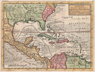 | Keywords: 1732 Herman Moll Map of the West Indies and Caribbean - Geographicus - WestIndies-moll-1732.jpg  This is Herman Molls small but significant c 1732 map of the West Indies Moll ™s map covers all of the West Indies eastern Mexico all of Central America the Gulf of Mexico North America as far as the Chesapeake Bay and the northern portion of South America commonly called the Spanish Main Typical of Moll ™s style this map offers a wealth of information including ocean currents and some very interesting commentary Additionally Moll most likely through his acquaintance with pirates William Dampier and Woodes Rogers offers a wealth of information on the traffic of silver bearing Spanish treasure fleets en route from the Mexican port of Veracruz through the islands to Spanish ports in Europe Following the dotted line Moll identifies the Spanish treasure fleet's entrada into the Caribbean via the passage between Granada and Trinidad The fleet then sailed westwards skirting the Spanish Main until they reached Cartagena where they rested and reprovisioned before heading northwards rounding western Cuba and stopping in Havana Using the strong Gulf Stream current - shown here - ships would sail northwards from Havana while being steadily forced to the southeast thus alighting at the deep water port of Veracruz On the return laden with silver from the mines of San Luis Potosi the Spanish fleet took advantage of eastward blowing trade winds which helped to overcome the strong current on the sail to Havana From Havana they would travel northwards via the narrow passage between Florida and the Bahamas before cutting eastward and out to sea at St Augustine It was here in this crucial passage between the English dominated Bahamas and Spanish Florida where the most nefarious pirates and British Privateers lay in wait for their profitable prey Moll further fills this marvelous map with numerous notations that while bearing no direct impact on piracy in the region do offer considerable insight into his political persuasions He identifies for example the river route through Tabasco and Chiapas via which supplies and cannons were transported to the important Pacific port of Acapulco Moll also makes some interesting choices with regard to his mapping of the French territories in North America namely New France and Louisiana He firstly in a nod to La Salle ™s colony of St Louis extends French control of Louisiana westward to the present day Texas-Mexico border of the Rio del Norte or as it is known today the Rio Grande He also includes Florida in the French regions “ a very curious anti-Spanish stance The North American British colonies including Carolina Virginia Georgia and Maryland are also noted This map was issued in a number of different states from 1729 to about 1750 Most commoly it appeared as plate no 55 in Herman Moll and Thomas Bowles' Atlas Minor This particular example was also issued in volume three of Samuel Simpson ™s The Agreeable Historian published in London in the 1740s 1732 undated Size in 11 8 object history credit line accession number WestIndies-moll-1732 Moll H Atlas minor or a new and curious set of sixty-two maps in which are shewn all the empires kingdoms countries states in all the known parts of the earth; with their bounds divisions chief cities towns the whole composed laid down agreeable to modern history By Herman Moll Geographer Thos and John Bowles London 1729 - 1736 ALSO IN Simpson S The Agreeable Historian London 1746 Geographicus-source PD-old-100 1732 maps Maps of the Viceroyalty of New Spain Old maps of the Caribbean Old maps of Central America Old maps of Mexico Maps in English Herman Moll Mexico in the 18th century |