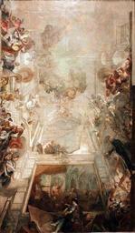 Keywords: 1737 Holzer Triumph der Kuenste und Wissenschaften anagoria.JPG Artwork Creator Johann Evangelist Holzer en The Triumph of the Arts and Sciences Ceiling Design Oil on paper mounted on canvas The oil sketch is a design for the picture gallery of the Würzburg Residence that was not executed The representatives of the Seven Liberal Arts are placed around the two-story hall Art can be seen in a prominent position on the lower edge de Der Triumph der Künste und Wissenschaften Deckenentwurf Die Ölskizze ist ein nicht ausgeführter Entwurf für die Gemäldegalerie der Würzburger Residenz In einer zweigeschossigen Halle sind die Vertreter der sieben Freien Künste verteilt An prominenter Stelle an der unteren Schmalseite präsentiert sich die Kunst anagoria 1737 Institution Germanisches Nationalmuseum Triumphs Paintings in the Germanisches Nationalmuseum Johann Evangelist Holzer Rococo allegorical paintings 1737 paintings 1730s paintings from Germany 1730s paintings in Bavaria 18th-century oil on canvas paintings in Germany PD-old-100 Oil on paper Files by User anagoria |