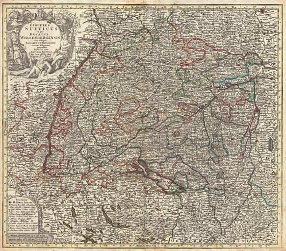 Keywords: 1740 Seutter Map of Swabia and Wirtenberg, Germany - Geographicus - Suevicus-seutter-1740.jpg This is a rare c 1740 map of Swabia and Wittenberg Germany Covers from Strasburg eastward as far as Landsperg north as far as Nuremberg and south to Lucern Includes Nuremberg Heidelberg Strasburg Manheim Lucerne Lucern Luzern Boden See and Stuttgart Detail includes cities forts some topographical features and districts Decorative title cartouche in the upper left quadrant featuring the instruments of science and symbols of bounty Prepared by Matthaeus Seutter and issued in Augsburg as plate no 11 in Homann Heirs ™ Maior Atlas Scholasticus circa 1740 undated Size in 22 5 19 75 object history credit line accession number Suevicus-seutter-1740 <i>Major Atlas Scholasticus Ex Triginta sex Generalibus et Specialibus Mappis Homannianis </i> c 1740 Geographicus-source PD-old-100 Maps by Homannsche Erben 18th-century maps of Baden-Württemberg Swabia 1740 maps Maps in Latin Maps by Seutter |