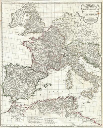 | Keywords: 1763 Anville Map of the Western Roman Empire (including Italy) - Geographicus - RomanEmpireWest-anville-1763.jpg This is the stunning western sheet from Jean Baptiste Bourguignon D ™Anville ™s two map set depicting the Roman Empire Depicts the western portion of the Roman Empire from Italy and Dalmatia westward to include all of Spain Ireland and England Also includes parts of North Africa including Carthage Extend northwards to the Baltic Sea Uses archaic place names throughout Decorative title cartouche at the upper right quadrant Engraved by Guillaume Delahaye for publication in the 1763 edition of Anville ™s Atlas General 1763 dated Size in 22 27 5 object history credit line accession number RomanEmpireWest-anville-1763 D'Anville J B B <i>Atlas Generale</i> 1763 edition Geographicus-source PD-old-100 Maps of the Western Roman Empire Old maps of Europe 1763 maps |